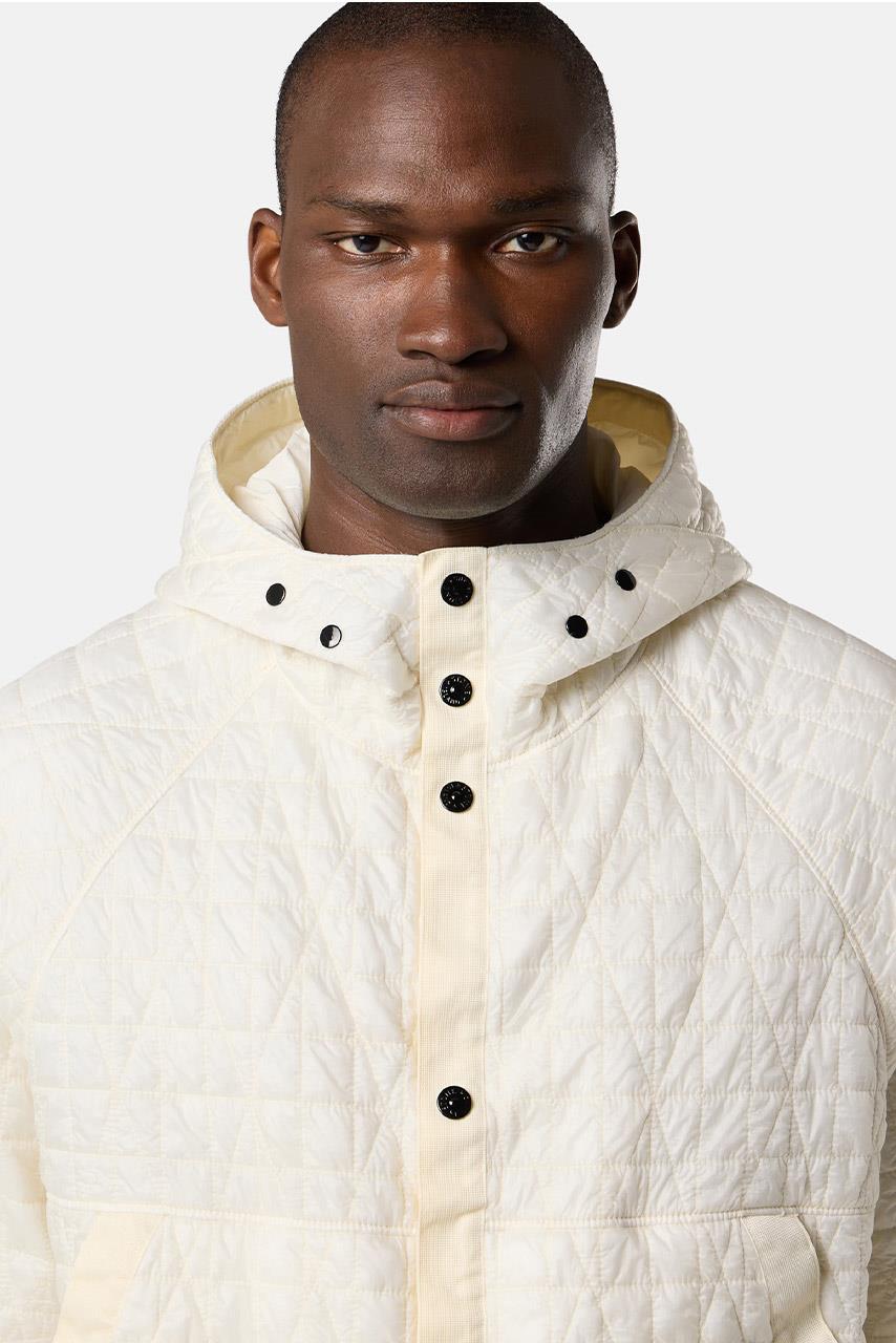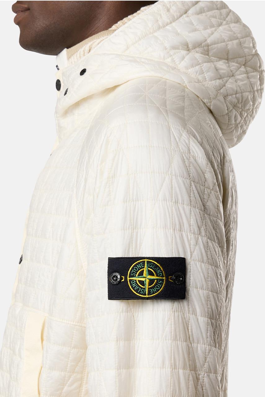 • Αφαιρούμενο πλεκτό ένθετο με ραβδώσεις και κουκούλα με φερμουάρ που στερεώνεται στο ένδυμα με κουμπώματα. Κουκούλα με κορδόνι περίσφιξης με κουμπώματα. Ρεγκλάν μανίκια. Τσέπες για τα χέρια με διαγώνιο τελείωμα και κουμπώματα. Επίπεδη ένθετη επένδυση στα πλάγια και κάτω από τις μασχάλες. Σήμα Stone Island στο αριστερό μανίκι. Ελαστική ταινία στις μανσέτες. Κούμπωμα με κουμπώματα σε νάιλον ταινία.