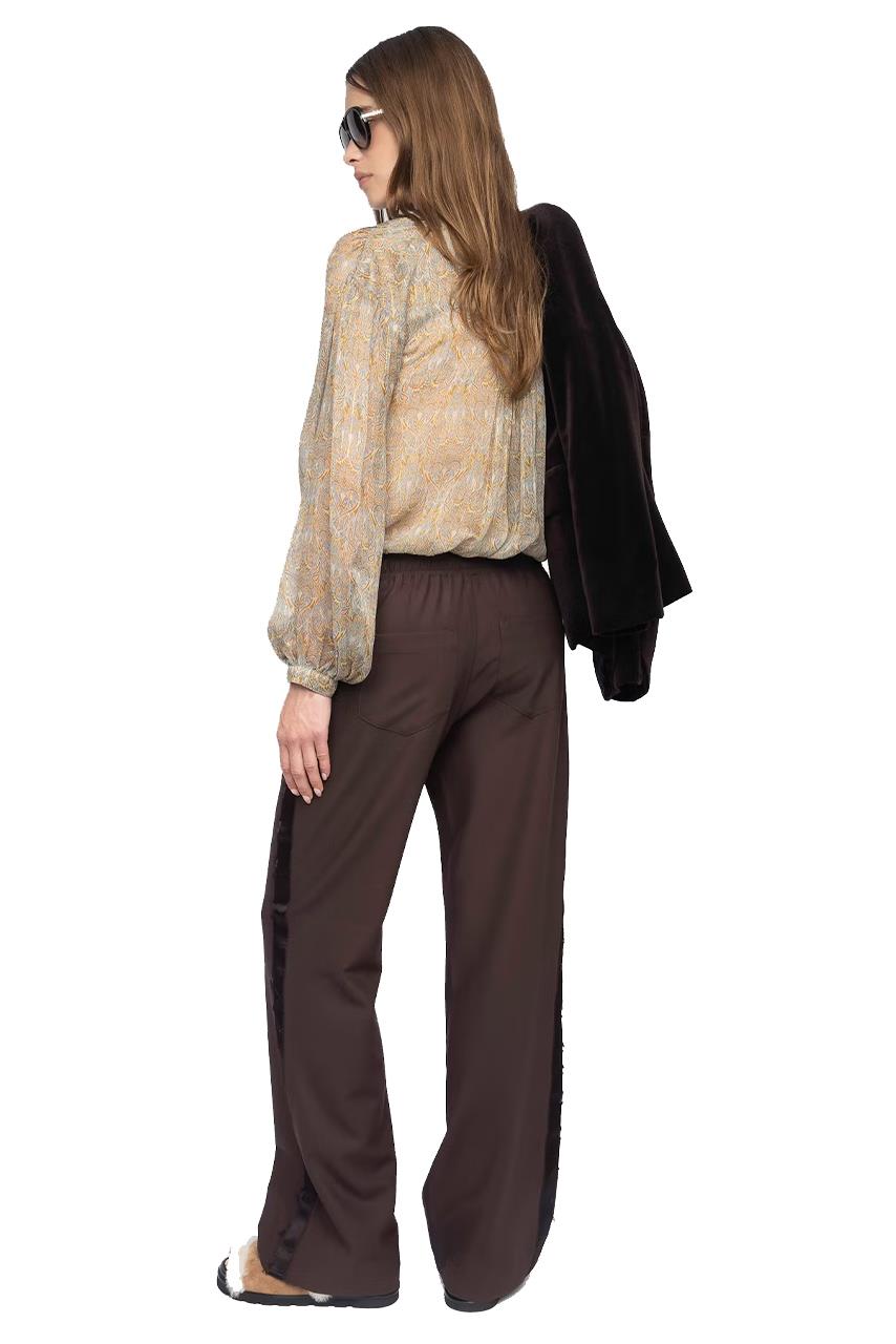 Παντελόνι tailored σε ίσια γραμμή με σχέδιο εμπνευσμένο από τζόκινγκ, με σατέν ρίγες και ελαστική μέση.