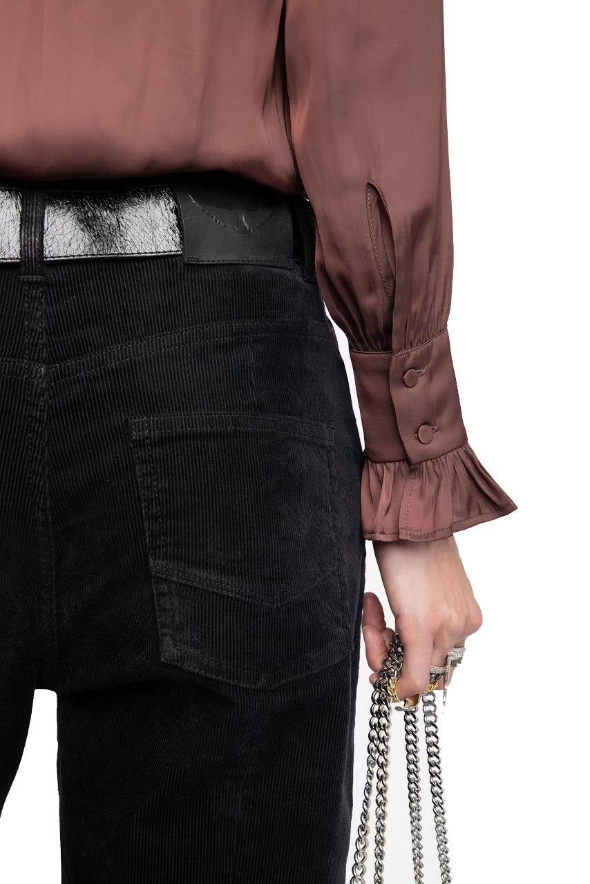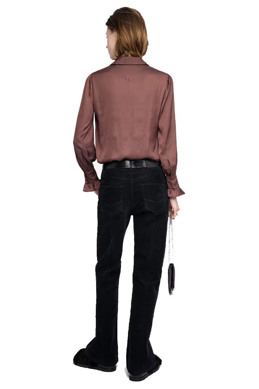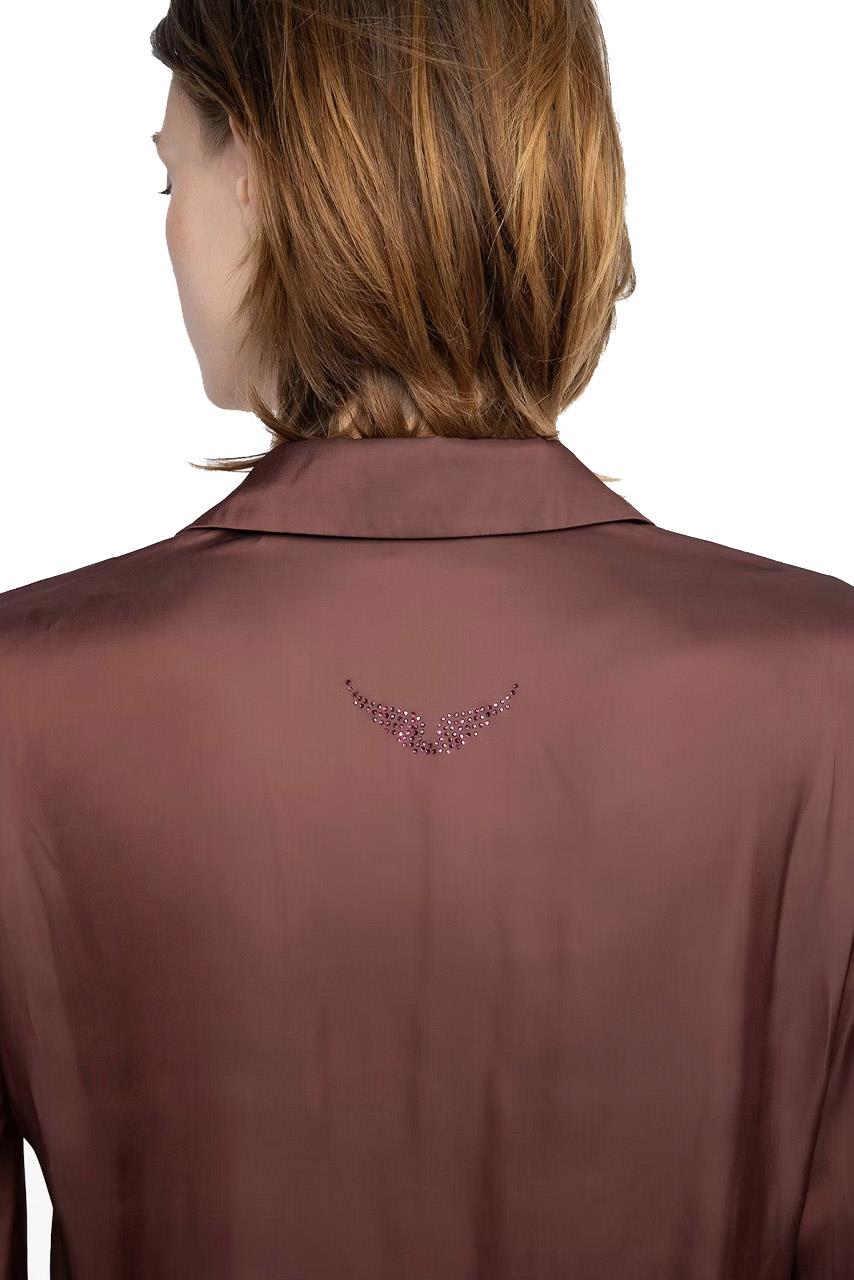 Σατέν πουκάμισο, μακριά μανίκια, κλείσιμο με κουμπιά και φτερό με στρας στο πίσω μέρος.