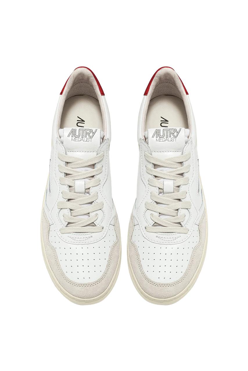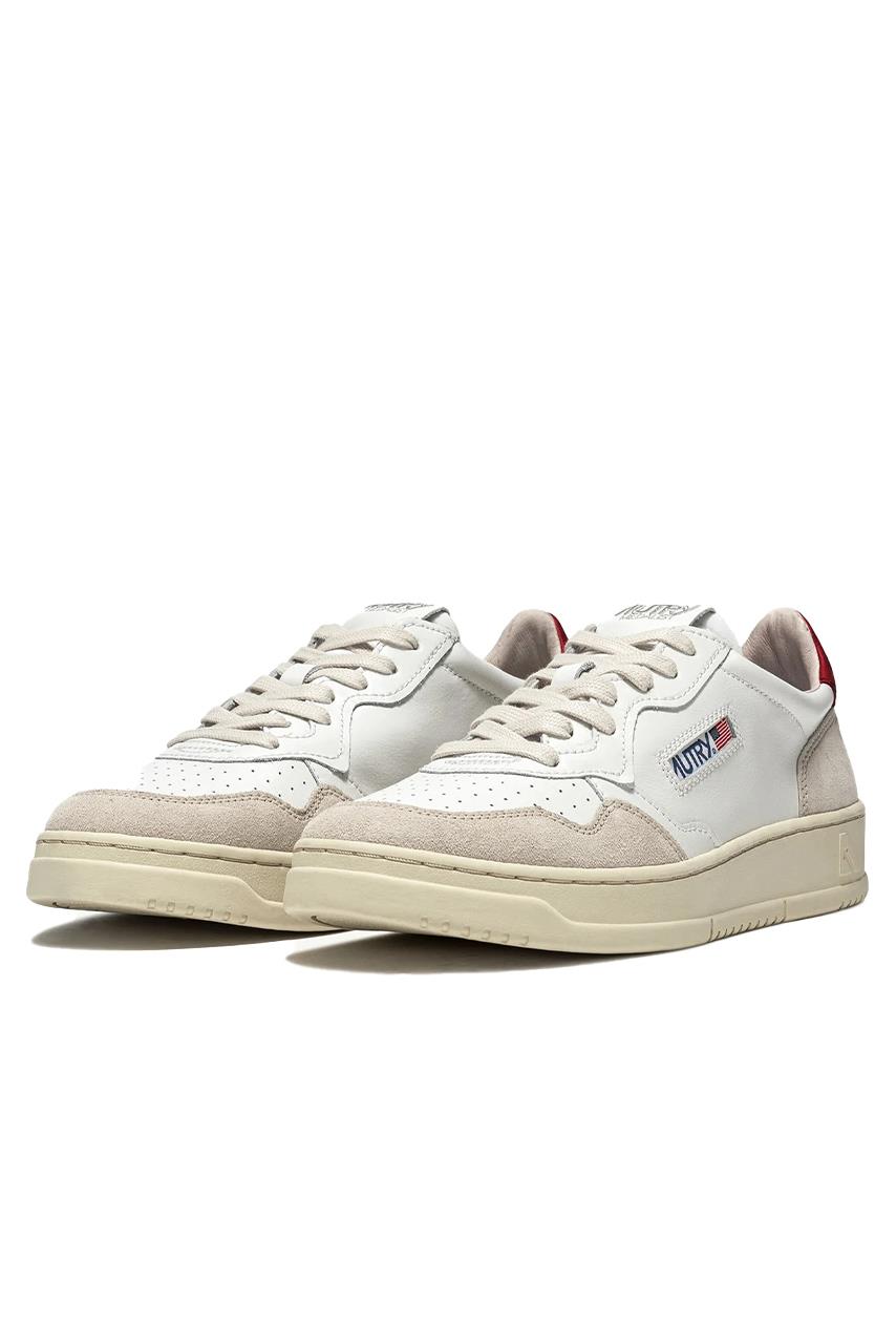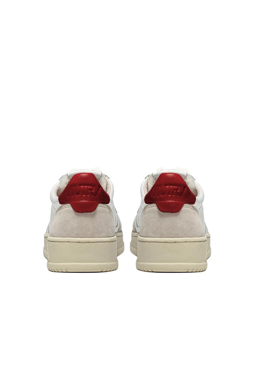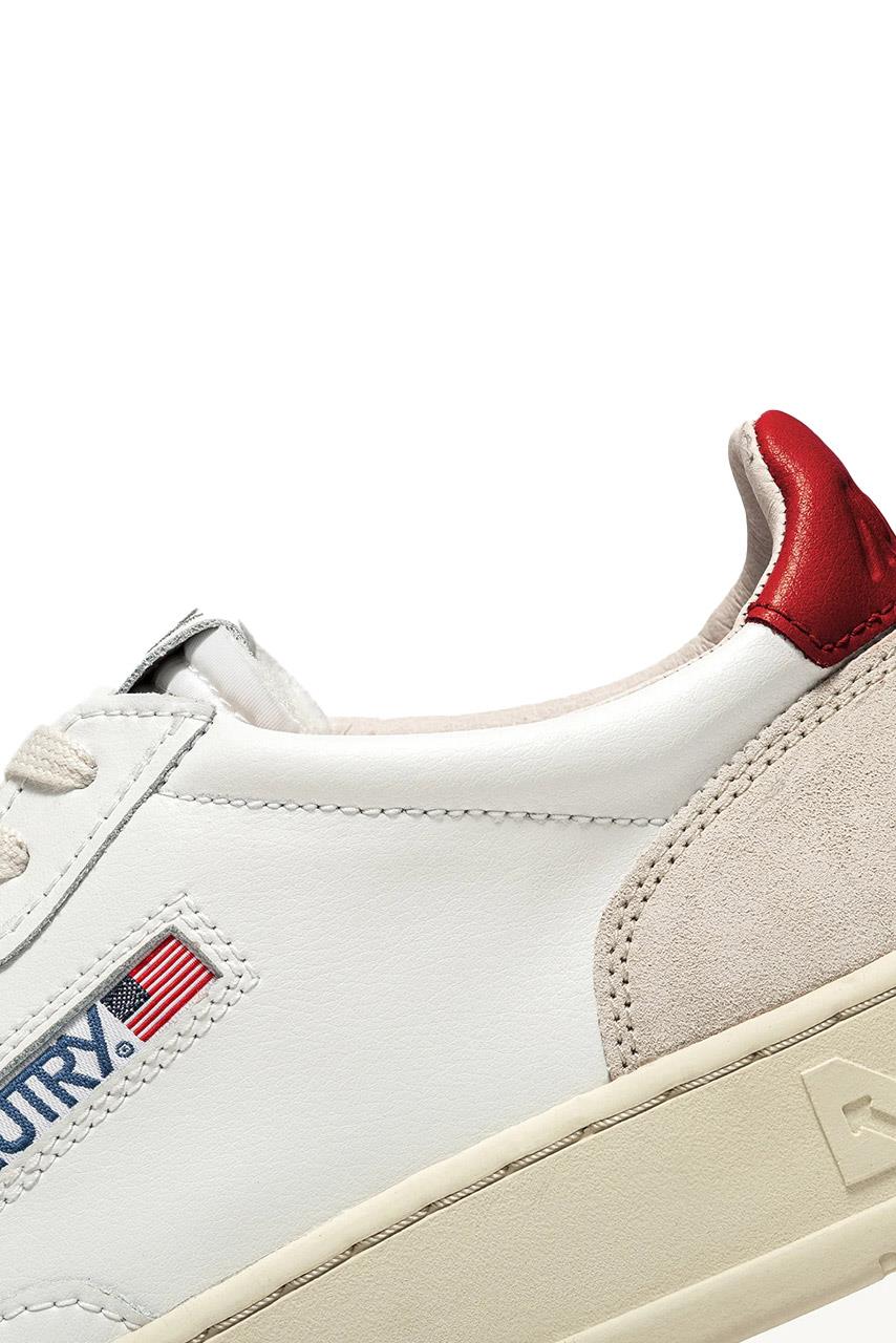 A red leather detail decorates the heel, personalized with the Autry logo.