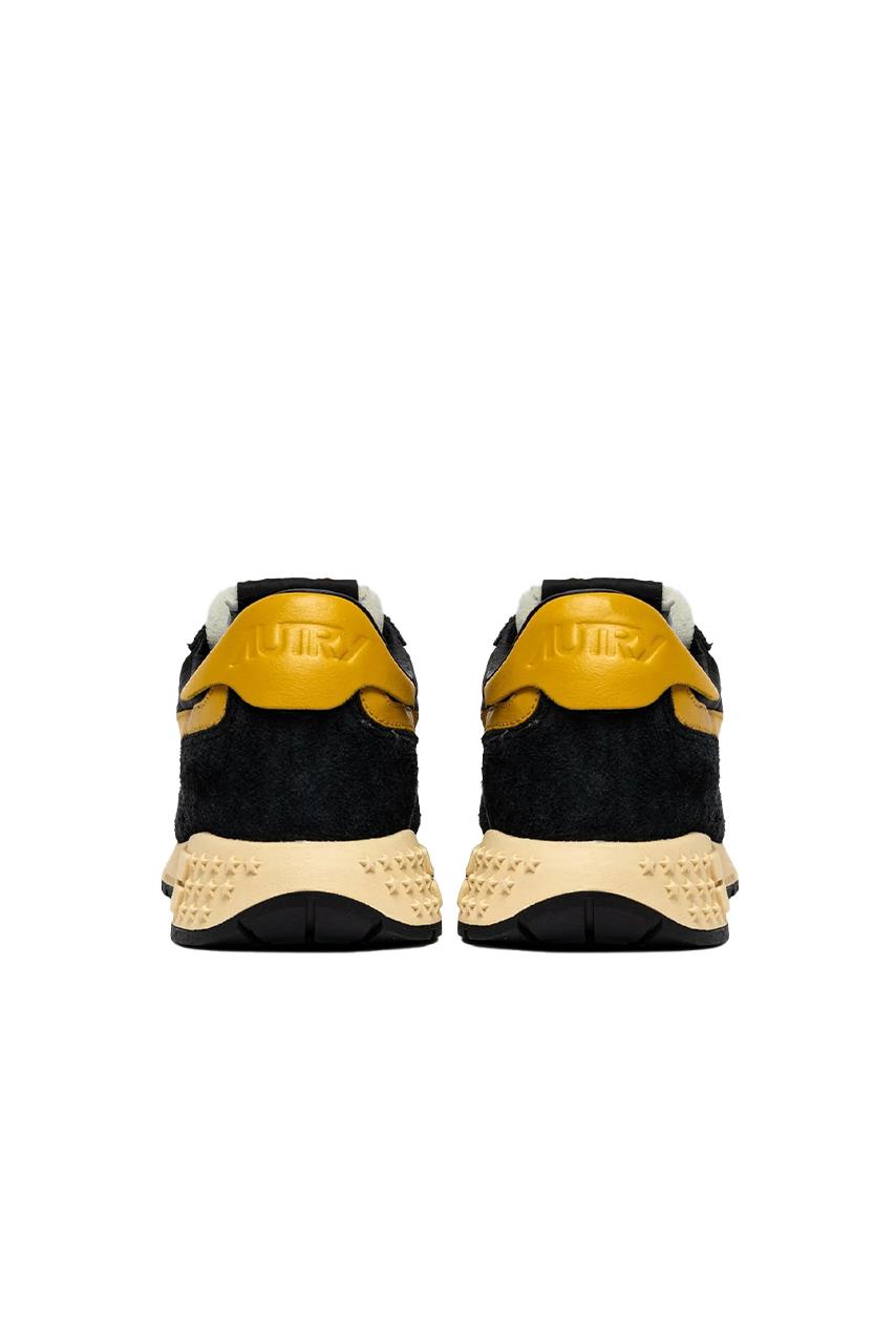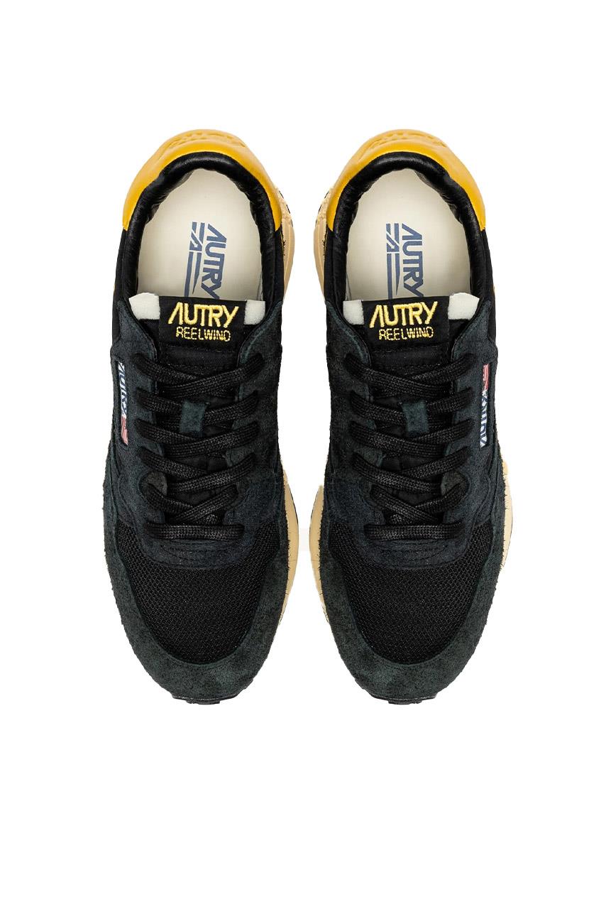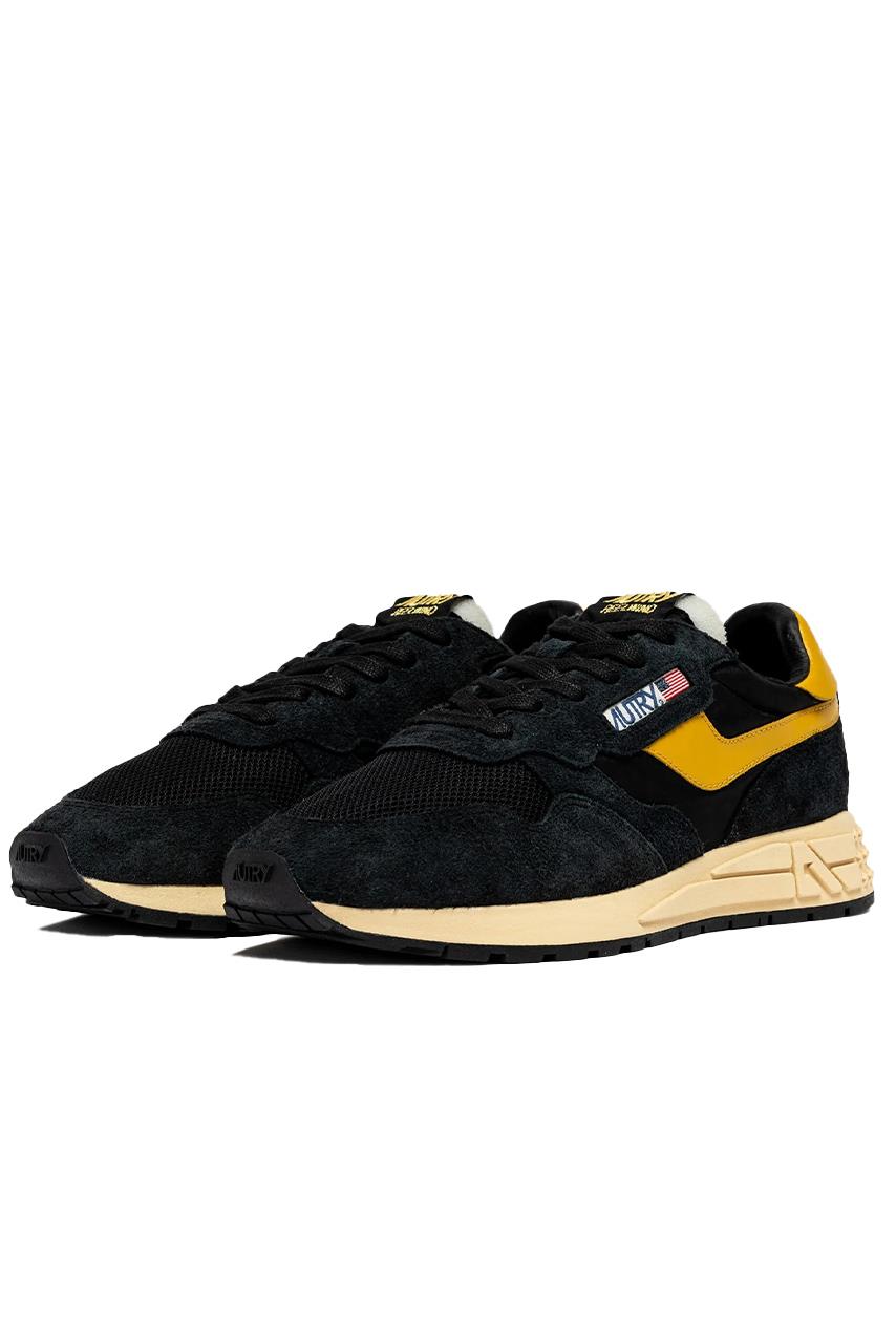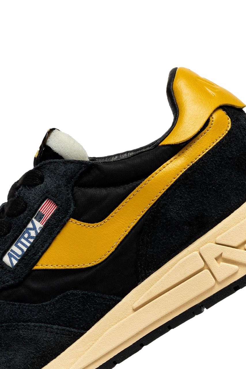 Reelwind low sneakers offer the technical edge of a performance sports shoe with the unmistakable style of the Autry aesthetic. This men’s athletic shoe is crafted from black nylon and is reinforced by inserts in color matching suede and yellow leather that create a dynamic design.